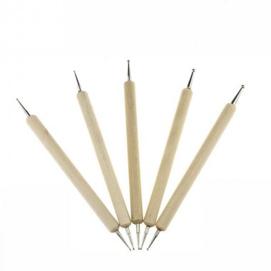 Двустранни точкатори за декорации на маникюр. С метални накрайници и дървени дръжки. 5 броя различни точкатори.