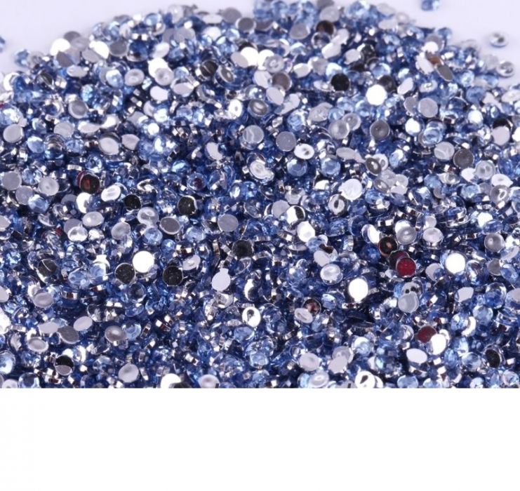 Камъчета за нокти в син цвят, изработени от полимер. Цената е за 100 броя кристалчета, с размер 2 милиметра.