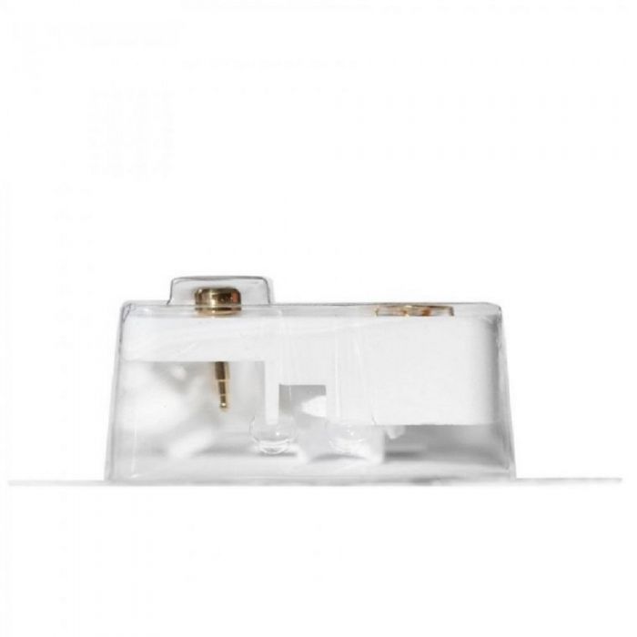 Комплект от 2 броя стерилни обеци със златисто тяло и бледо розово кристалче. |