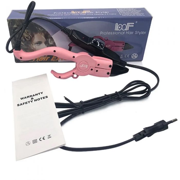Употреба: Разделете косата на пластове от тила към върха на главата. Поставете протектор до корена на косата, за да предпази от топлината скалпа. Поставете удължителя. Стиснете леко за 3 секунди, за да се разтопи и разнесе лепилото по всяко косъмче. Не използвайте шампоан или балсам 24 часа. Изключвайте уреда след употреба. Не потапяйте във вода или друга течност. Дължина на кабела: 2.5 метра. Цвят: розов. Размер: 25 сантиметра - 2.5 сантиметра - 5 сантиметра.