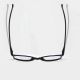Пластмасови рамки без стъкла с фина декорация за слепоочията. Дамски мъжки рамки за очила. Семпли очила огъващи, разширяващи се рамки. Цвят: черен. Дължина на страничните рамките: 13.8 сантиметра. Размер на предната част: 13.5 сантиметра. Размер само за отвора на стъклата от най-широката и най-високата вътрешна част на рамките: 4.2 - 5 сантиметра. Разстояние за носа: 2 сантиметра. Рамки за поставяне на стъкла до 2.5 диоптъра.