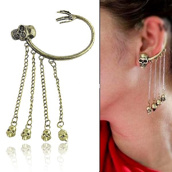 Обица с черепчета на синджири.