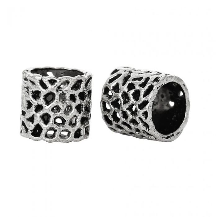Метални, релефни пръстени. Ефектни накити за нанизване на дебели плитки. За многократна употреба. Цена за: 10 броя. Материал: метал. Цвят: сребърен + черен. Диаметър: 8 милиметра. Вътрешен диаметър: 6.4 милиметра.
