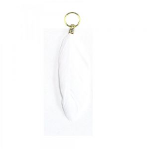 Боядисано перо от гъска с разширяваща се двойна жълта халка (с невъзможност за изпадане и губене на висулката). Универсална висяща обица за закачане на афро плитки. За многократна употреба. Размер на халката: 1.2 сантиметра. Цена за: 1 брой. Цвят: бял. Размер на перото: 1.5 - 6.5 сантиметра.