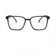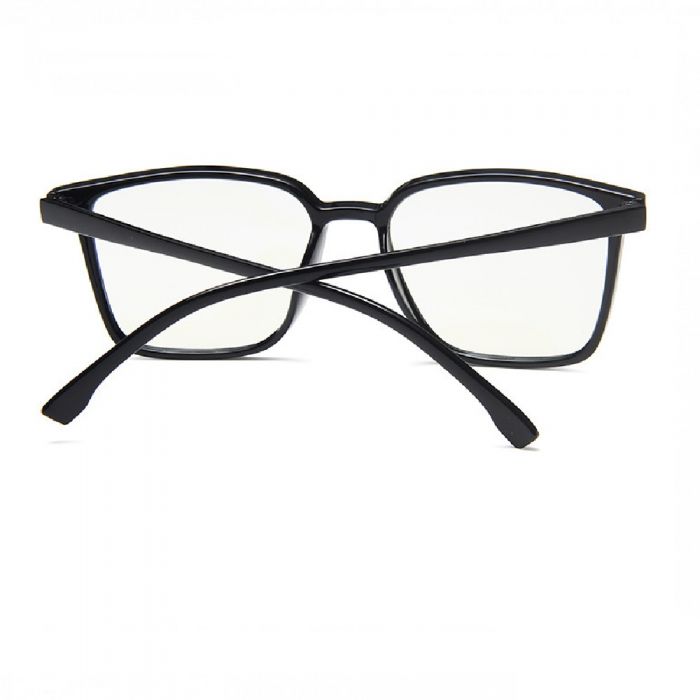 Очила за компютър. Размер на страничните дръжки: 14.1 сантиметра. Размер на предната част: 14.2 сантиметра. Размер на стъклата: 4.3 - 5.3 сантиметра. Разстояние на носа: 1.4 сантиметра. Черни очила с прозрачни стъкла.