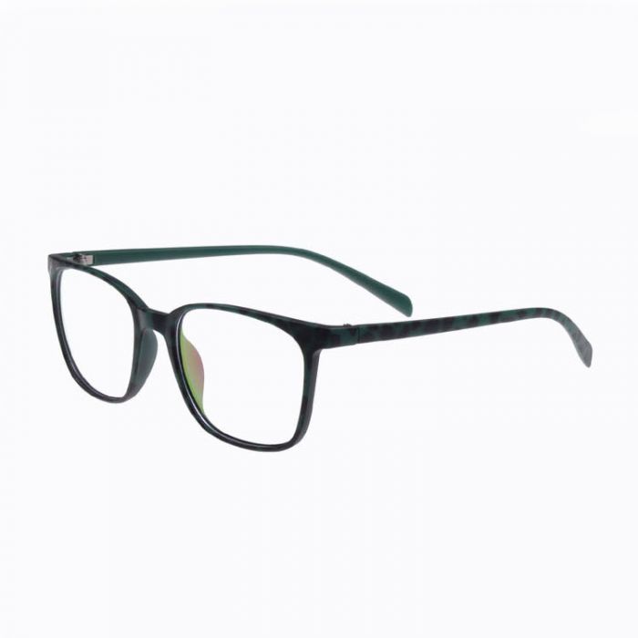 Очила без диоптър с тънка пластмасова, рамка Рамката е в тъмно зелено и черно.