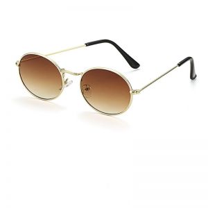 Тънка метална рамка с разширяване зад ушите. Жълти рамки с кафяви стъкла. Разстояние за предната част: 13.5 сантиметра. Диаметър на стъклата: 3.5 - 5 сантиметра. Разстояние за носа: 2 сантиметра. Дължина на страничните рамки: 13.7 сантиметра. Очила с градиентни лещи блокиращи на 100% вредни UV лъчи.
