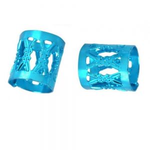Релефни, плътни пръстени за коса с прорези. Цена за: 10 броя. Цвят: светло син. Диаметър: 8 милиметра с възможност за разширяване и свиване. Височина: 8 милиметра. Материал: алуминий.