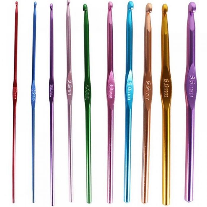Комплект куки за сплитане на коса. В комплекта има 22 броя. Половината са алуминиеви, а останалите са хром. Куки с размер: 0.6 - 0.75 - 0.85 - 0.9 - 1 - 1.1 - 1.25 - 1.4 - 1.5 - 1.6 - 1.75 - 1.9 милиметра от алуминии. Хром куки размер: 2 - 2.5 - 3.0 - 3.5 - 4 - 4.5 - 5.0 - 5.5 - 6.0 - 6.5 милиметра. Тегло: 168 грама.