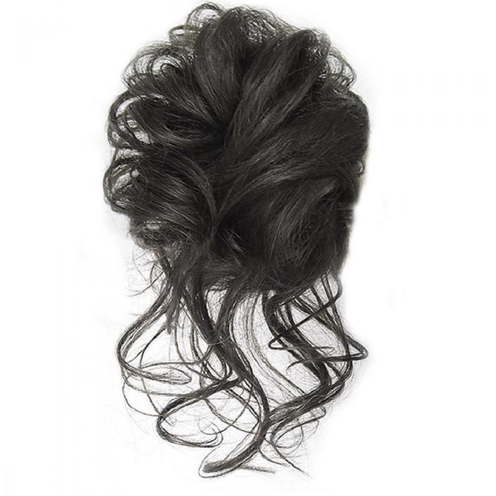 Боядисан, хунски кок за придаване на обем на коса. Ефектен атрибут от синтетичен косъм, имитация на естествена коса. Перяща се, за многократно използване при топлинна, високо температурна обработка. Цвят: натурално черен. Възможност за боядисване - към по тъмен цвят. Размер: 8 - 14 сантиметра. Материал: изкуствен косъм + ластик.
