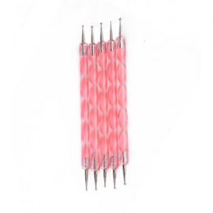 Двустранни точкатори за декориране на маникюр. Комплекта включва 5 броя, различни размери. Дължина: 13 сантиметра. Цвят: розов. Подходящи за домашна и професионална употреба.