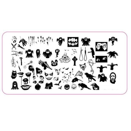 Шаблон за маникюр с хелоуин елементи. Може да се използва многократно. Цената е за 1 брой. Размери: 6.5 - 12.5 сантиметра.