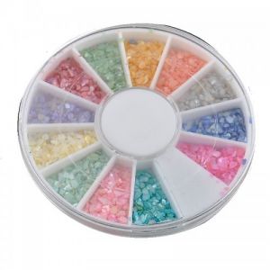 Сет от слюдести късчета за нокти. 12 цвята в комплект. Цената е за 1 кутийка.