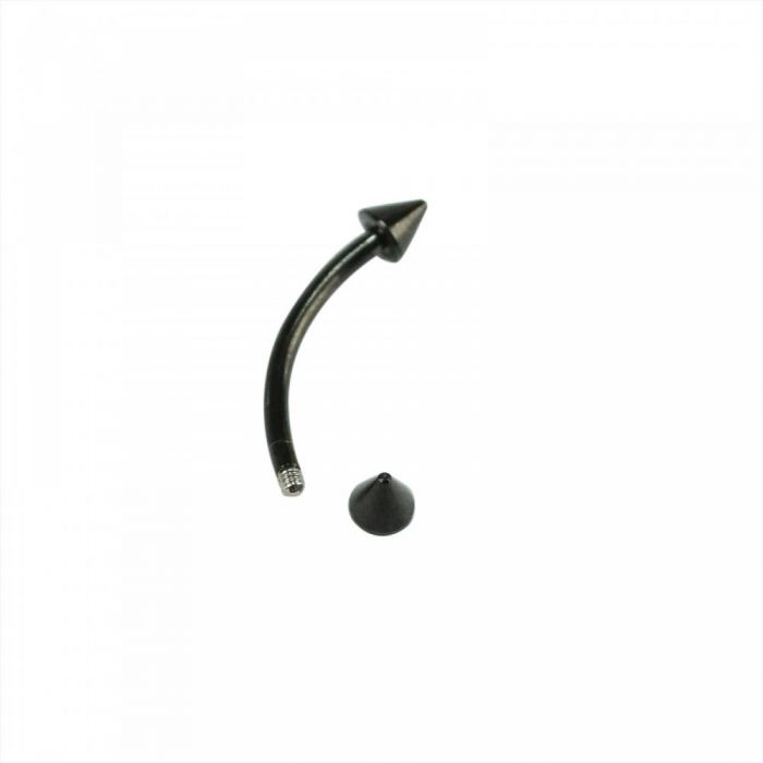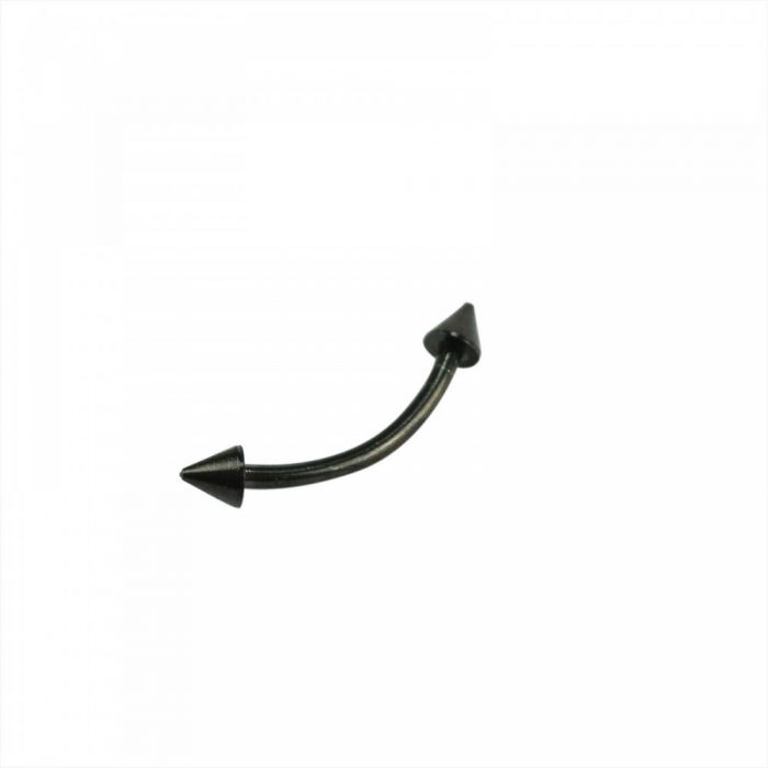 Обици за вежда с конуси. Дължина: 12 милиметра. Диаметър: 1.2 милиметра. Диаметър на конусите: 3 милиметра. Материал: анти алергична медицинска стомана. Цвят: черен. Цена за: 1 брой.