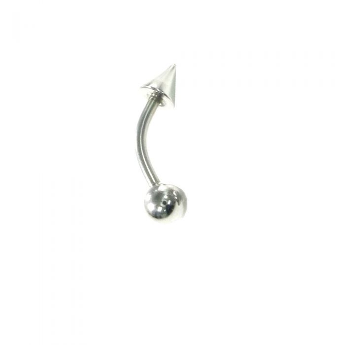 Обици за вежда с конус и топче. Дължина: 10 милиметра. Диаметър: 1.2 милиметра. Диаметър на конуса: 3 милиметра - топче: 3 милиметра. Материал: анти алергична медицинска стомана. Цвят: бял. Цена за: 1 брой.