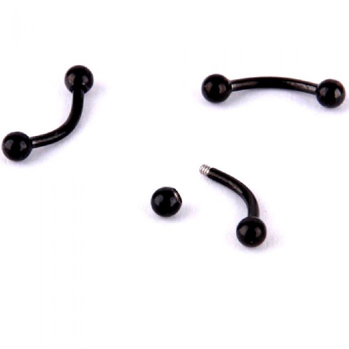 Обици за вежда с топчета. Дължина: 8 милиметра. Диаметър: 1.2 милиметра. Диаметър на топчетата: 3 милиметра. Материал: анти алергична медицинска стомана. Цвят: черен. Цена за: 1 брой.