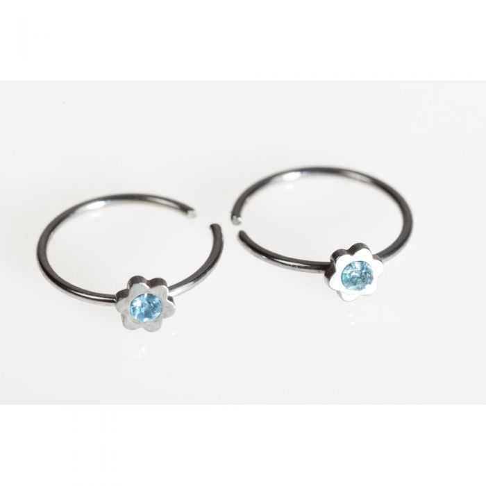 Фалшива обеца от медицинска стомана цвете със светло син кристал. |