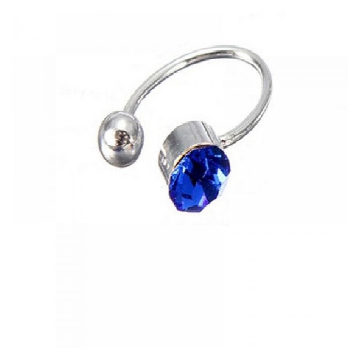 Фалшива мини обеца от медицинска стомана халка със син кристал. |
