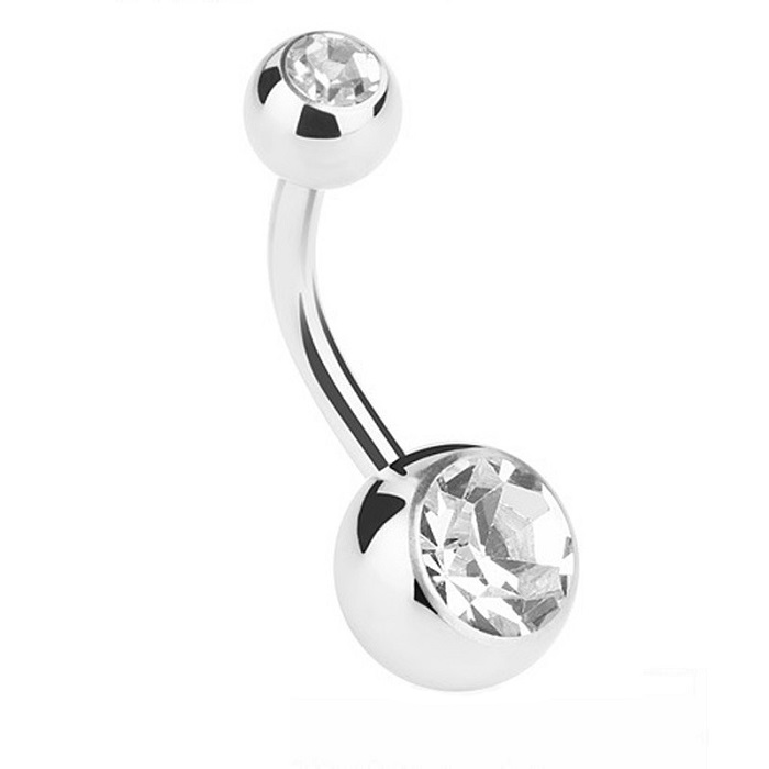 Стоманена бяла обица 10 милиметра ствол бели кристали с блясък.