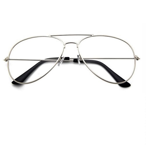 Очила с метални бъбрековидни сребърни рамки. Дължина на страничните рамки: 13.3 сантиметра. Дължина на предната рамка: 14 сантиметра. Диаметър на стъклата: 5.5 сантиметра. 100% UV защита.