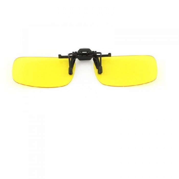 Свалящи се жълти продълговати стъкла на очила малък размер. Обща дължина: 13.6 сантиметра. Размер на стъклата: 3.4 - 5.5 сантиметра. 100% UV защита. Материал: полимери.