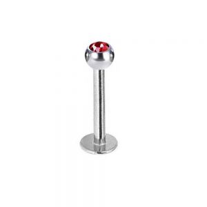 Къса, стоманена обеца за устна или ухо, бяла стомана с червен кристал.
