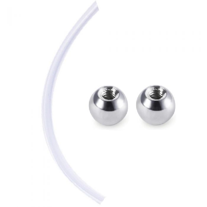 Обица за поставяне на стара дупка на пъпа. Дължина на ствола: 50 милиметра. Цвят: прозрачен. Материал: биофлекс. Обица за пъпа с топчета. Скъсяваща се обица. Цена за: 1 брой.