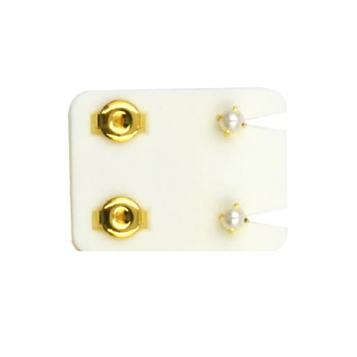 Комплект от 2 броя стерилни обеци със златисто тяло и бяла перла. |