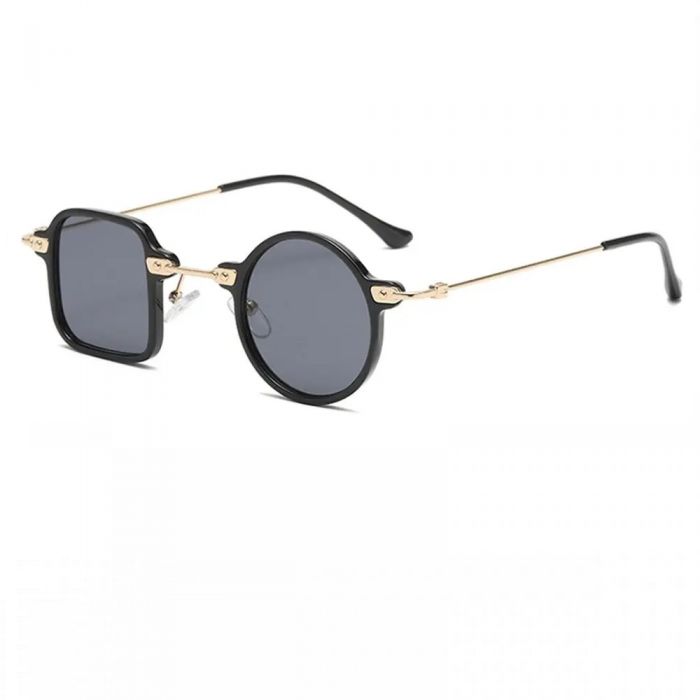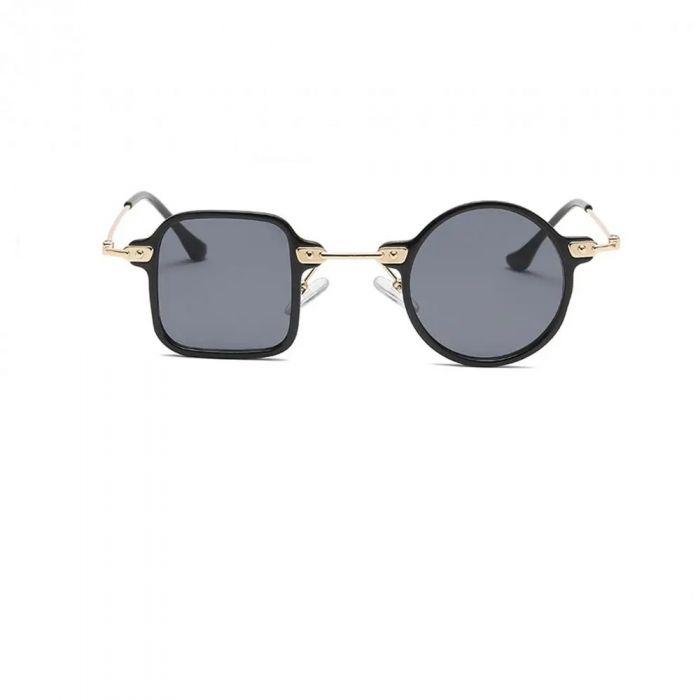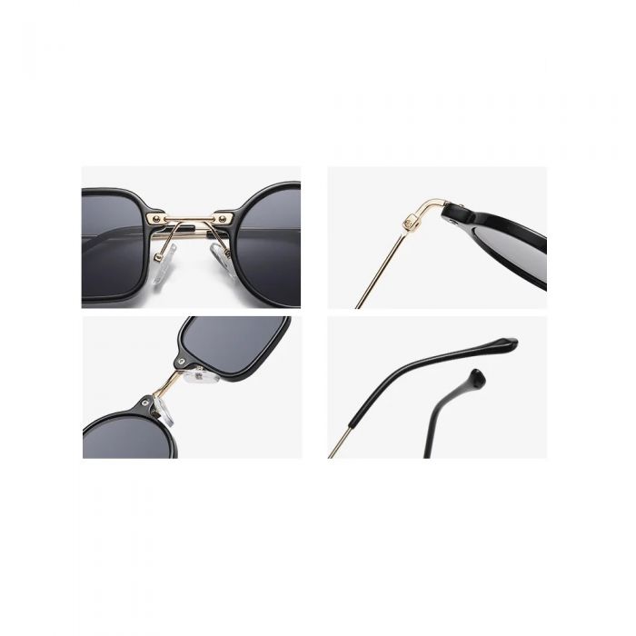 Модни дизайнерски слънчеви кръгли и квадратни очила със странични елементи. Извънгабаритни с ултравиолетова защита. Атрактивна, квадратна, метална черна рамка. Очилата са със 100% UV защита и видима перспектива 99 (%). Квадратни кръгли слънчеви очила. Разстояние между стъклата: 3 сантиметра.