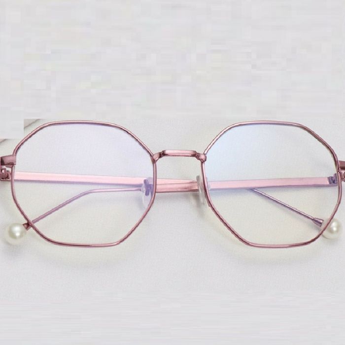 Очила с тънка метална рамка осмоъгълни стъкла. Очила за ежедневно носене с декоративни топчета в края на дръжките. Дамски очила за компютър. Намаляват умората и успокояват очите. Прозрачни очила със защитно анти рефлексно покритие, филтър за премахване на отблясъци, синя светлина.
