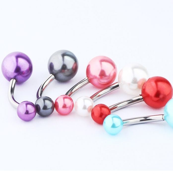 Светло сини перли с блясък обици за пъп
