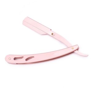 Професионален бръснач със сменяеми ножчета. Бръснач от стомана, с предпазител, в розов цвят. Дължина 14 сантиметра.