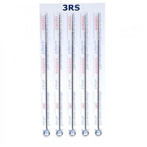 Професионални игли за татуировки - контур, светло сенки, запълване. Игла с разтворени върхове - 3RS. Материал: медицинска стомана. Стерилни игли стандартна дължина. Цена за: 1 брой. За еднократна употреба.