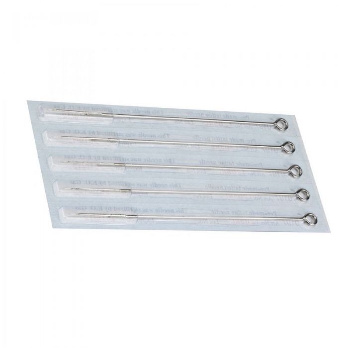 Професионални игли за татуировки - контур, светло сенки, запълване. Игла с разтворени върхове - 5RS. Материал: медицинска стомана. Стерилни игли стандартна дължина. Цена за: 1 брой. За еднократна употреба.