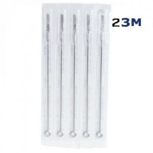 Професионални игли за татуировки - сенки, запълване. Игла с равно подредени върхове - 23М. Материал: медицинска стомана. Стерилни игли стандартна дължина. Цена за: 1 брой. За еднократна употреба.