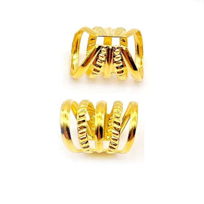 Антиалергична обица за поставяне на ухото или косата. Петорна фалшива обица. Цена за: 1 брой. Закрепване на ухото или плитката чрез защипване. Материал: медицинска стомана. Цвят: златен. Обица за плитки. Обица за коса. Размер: 1.1 - 1.4 сантиметра. Цена за: 2 броя.