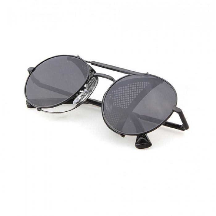 Унисекс слънчеви очила с метални, подвижни странични мрежи. Очила с ултравиолетова защита - UV400. Размер на стъклата: 4.8 - 5.1 сантиметра. Разстояние за носа: 1.8 сантиметра. Размер на предна и странична рамка: 14.2 - 14.4 сантиметра. Цвят на рамките: черен. Цвят на стъклата: черен. Подходящи за всяка форма лице.