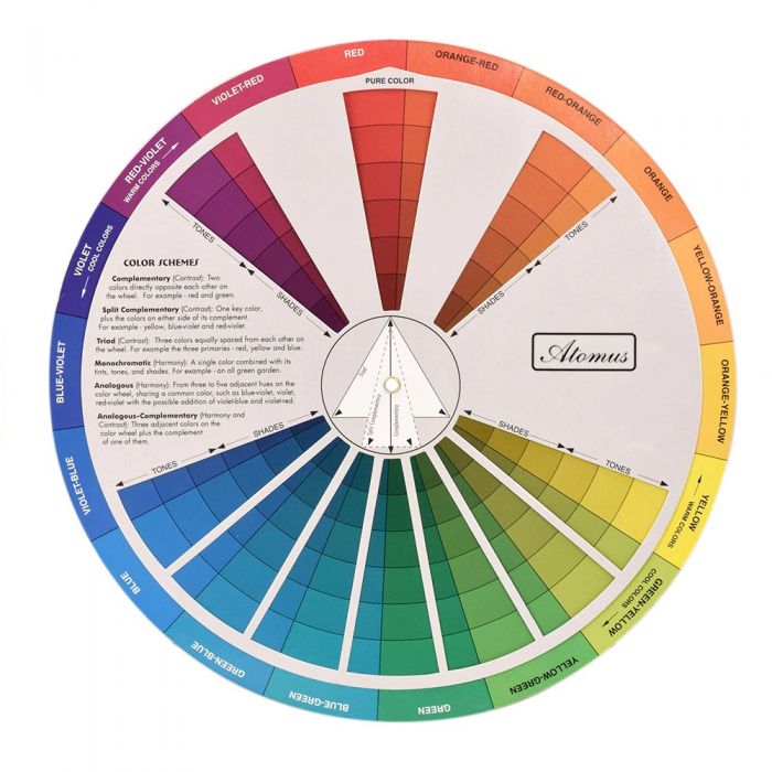 Консуматив за определяне на нюанси и цветови гами, оптимални цветови комбинации. Подбиране на цветовете при перманентен грим и татуировки. Влияние на цветовете при перманентен грим и татуировки. Практична палитра за визуализиране връзката между пигментите. Размер: 23 сантиметра. Материал: твърда хартия. Начин на употреба. Изберете цвят от външния кръг. Подберете цвят от вътрешния кръг и ги подравнете. Резултата е в прозореца.