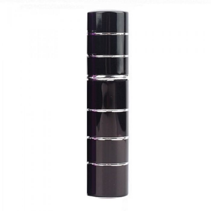 Флакон за парфюм. Спрей шишета за есенции. Аксесоар за дамска чанта. Цвят: черен. Ефектни пръстени, полирана повърхност. За многократна употреба, след обилно измиване с гореща вода. Вместимост: 5 милилитра. Височина: 8.2 сантиметра. Диаметър: 1.85 сантиметра. Тегло: 18 грама.