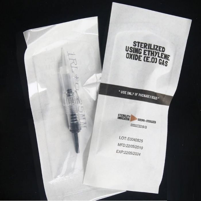 Стерилна игла с автоматизиран водач за регулиране дължината на иглата. Професионални игли за перманентен грим, устни, вежди, сенки, татуировки. Материал: медицинска стомана 316L. Иглите са за писалка без резба. Диаметър на отвора: 8 милиметра. Размер 7F игли подредени в прав ред. За еднократна употреба. Цена за: 1 брой. Стерилни игли.