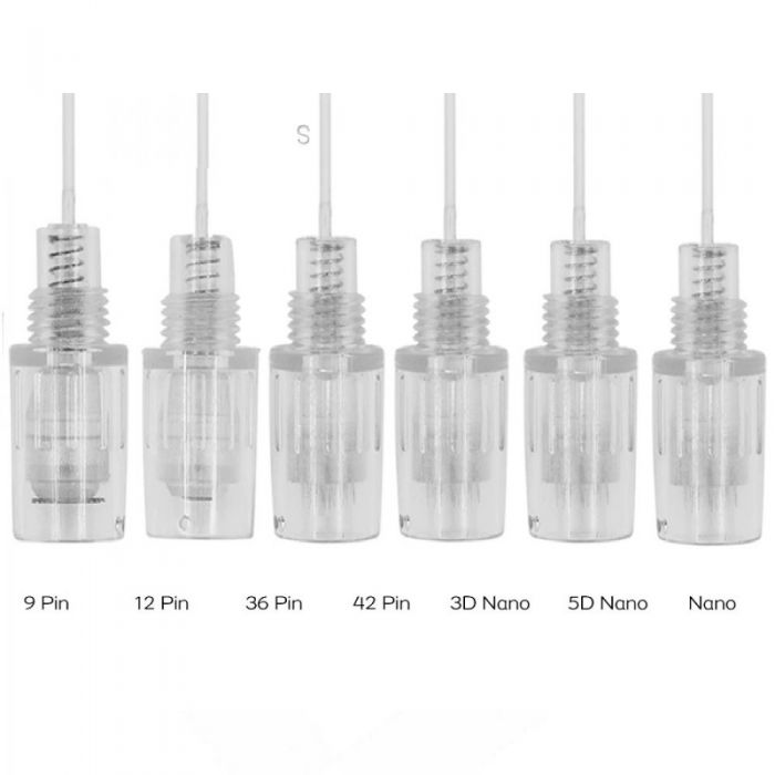 Професионални накрайници за комбинирани писалки перманентен грим и мезо терапия. Резба 8 милиметра. Материал: медицинска стомана 316L. За еднократна употреба. Цена за: 1 брой. Стерилна игла за машина Charmant. 12 игли в касетка.