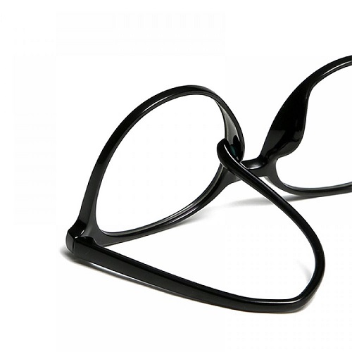Пластмасови рамки без стъкла. Дамски мъжки рамки за очила. Семпли очила огъващи се рамки семпли мини декорация над стъклата. Цвят: черен. Дължина на страничните рамките: 13.8 сантиметра. Размер на предната част: 14.2 сантиметра. Размер само за отвора на стъклата от най-широката и най-високата вътрешна част на рамките: 4.1 - 5.2 сантиметра. Разстояние за носа: 2 сантиметра. Рамки за поставяне на стъкла до 2.5 диоптъра.