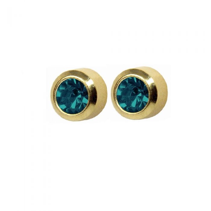 Комплект от 2 броя стерилни анти алергични обеци медицинско злато с тъмни кристалчета цирконий. |