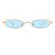 Ретро очила с овални стъкла. Изящна тънка рамка с ефектен завършек. Универсални очила. Цвят: златни рамки светло сини стъкла. Разстояние за предната част: 14.3 сантиметра. Диаметър на стъклата: 2.3 - 5.5 сантиметра. Дължина на страничните рамки: 14.1 сантиметра.