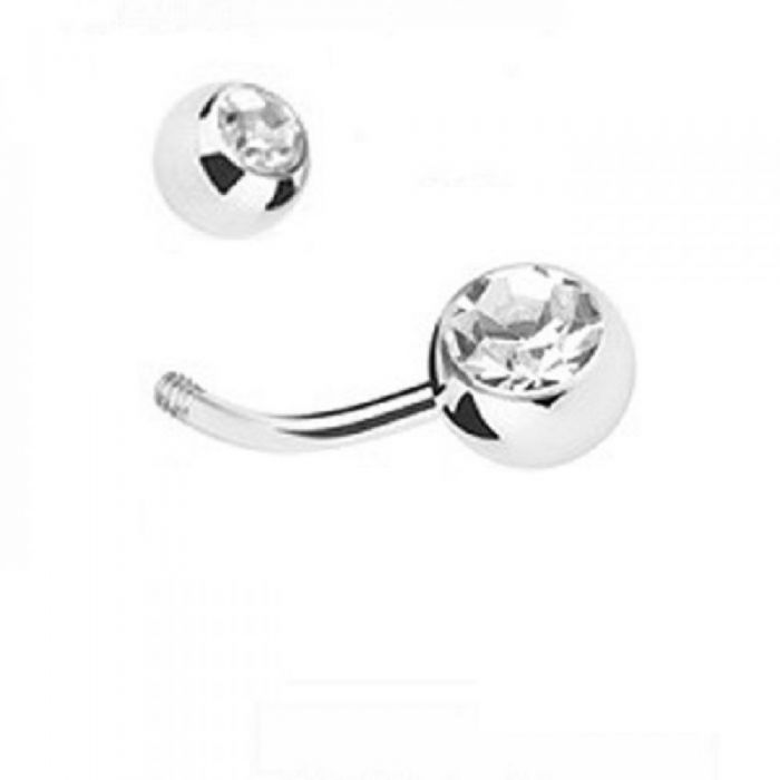Стоманена бяла обица 10 милиметра ствол бели кристали с блясък.
