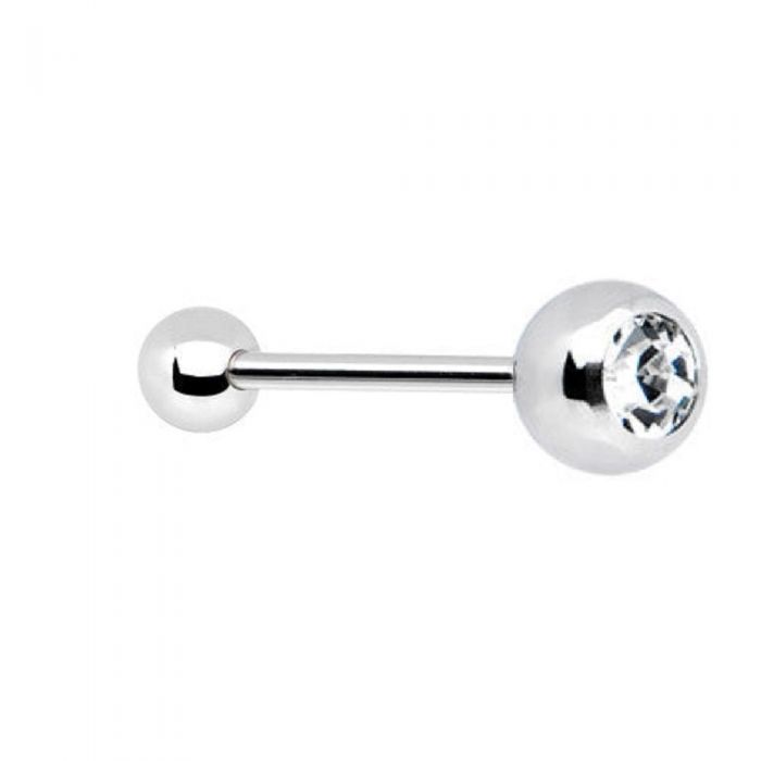 Права стоманена бяла обица 18 милиметра бял кристал.