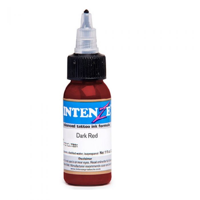 Професионална боя за татуиране INTENZE. Интензивен наситен цвят за професионална употреба. Цвят: тъмно червен. 30 милилитра.