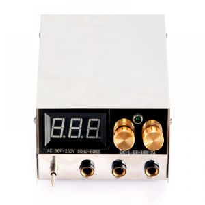 Захранване за 2 машини за татуировки LCD дисплей Цвят: сребрист Материал: неръждаема стомана Напрежение: AC 60V-250V, 60Hz Изходно напрежение: DC 1.5-15.5V (регулируемо) Изходен ток: 1A Размер: 12,3 сантиметра - 9,3 сантиметра - 5,6 сантиметра Подходящ за всички видове татуировка машина. Тегло на опаковката: 400 грама